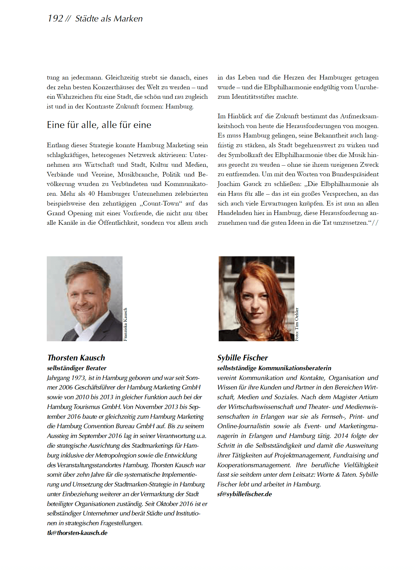 Seit 2015 arbeite ich bereits mit Thorsten Kausch aus Hamburg zusammen. Thorsten ist ein strategischer Berater und war viele Jahre Geschäftsführer der Hamburg Marketing GmbH. Ich habe gemeinsam mit ihm Fachartikel verfasst, Networking-Events organisiert und Ideen entwickelt.